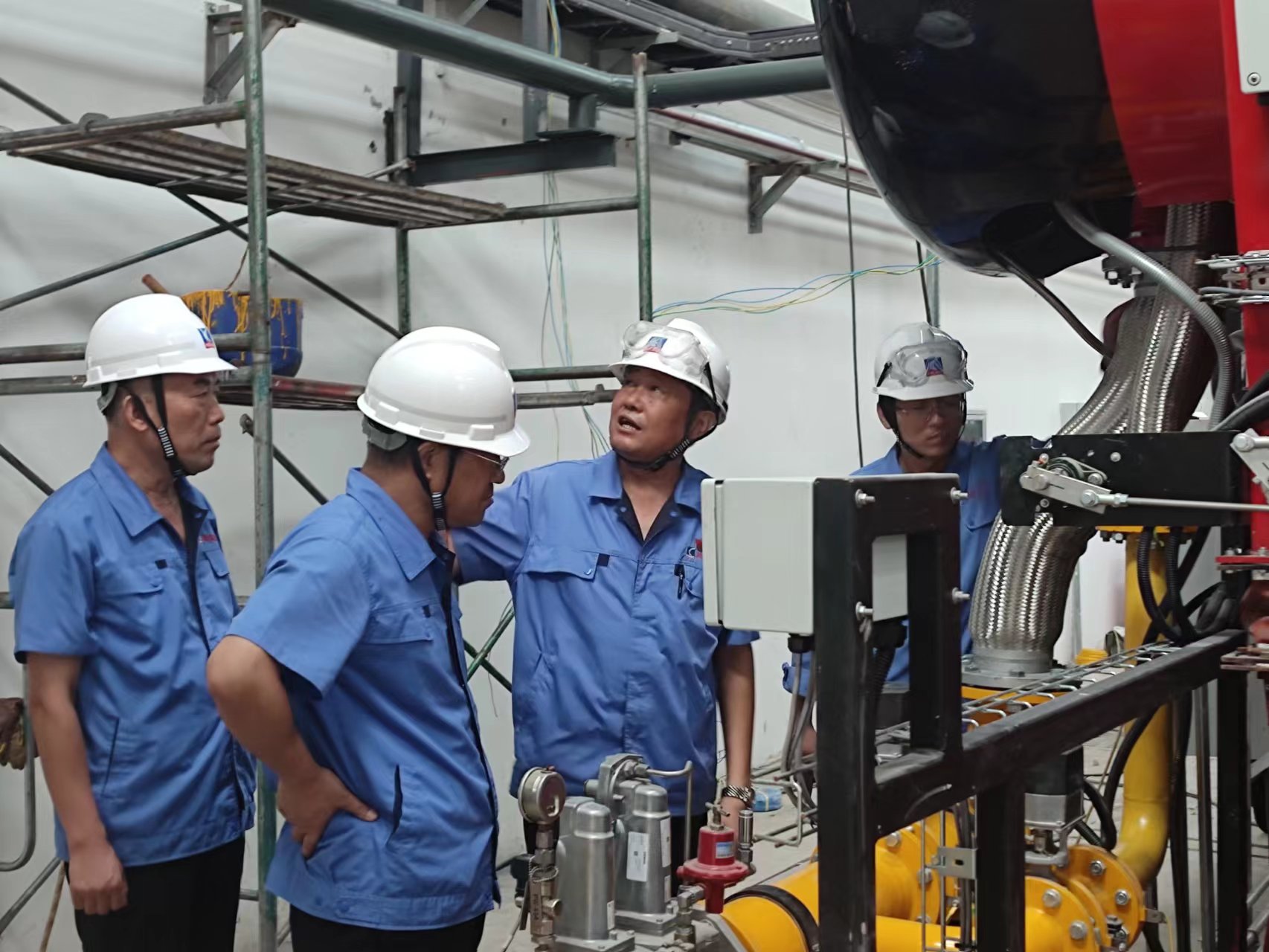 在鍋爐項目建設現場,王讀升詳細了解項目建設整體進展情況,并對天 然氣裝置、鍋爐廠房等進行實地查看。王讀升對項目建設工作提出要求:工程已進入沖刺和收官階段,要進一步強化責任意識,保證工程質量和施工安 全,嚴控時間節點,確保項目如期完成;對建設過程中可能出現的問題要有預見性和前瞻性,統籌謀劃,提前部署;對下一步烘爐、煮爐等重要工作, 要優化方案,科學合理安排,抓好關鍵點,特別是鍋爐投運后的操作規程等事項,要嚴格規范管理,及時做好教育培訓及工藝流程技術交底工作。